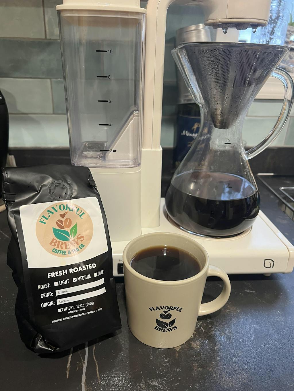 The mug is a perfect size for a small quick afternoon cup of Flavorful Brews espresso Sumatra. By the way, the only issue I had with the coffee is that I couldn’t open the package quick enough - sealed and airtight! Great products and thanks for the speedy arrival. I need coffee